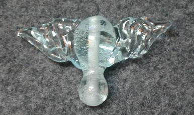 This is the "flying bowling pin", an abstract winged thingie. I got interested in the possibility of making bird-like wing shapes, and the idea was to make the body out of ghostly dichro (clear dichro stringer encased in plain clear).