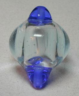 This is the rattler (hollow bead with a small loose bead inside) against a lighter background. You can see a distorted image of the small bead in the bottom. You can also see the very uneven wall thickness, unfortunately.