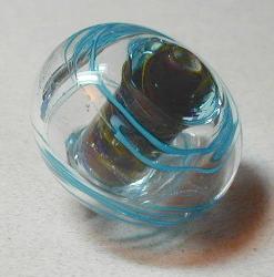 This is another angle on the striped hollow bead with the unfortunate overcooked axle. The shell is nice and clear, and as you can see much thinner and more even than some of its predecessors.