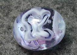 This is another clear bead with Geo Stanford's mille in it, raked into abstract distorted shapes. Not very successful. The core is mystery glass, which I suspect is alexandrite.