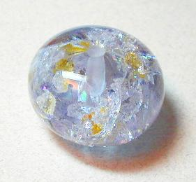 This bead is a clear core with chunks of thermal-shocked CZ inside. Unfortunately I put too much in and it cracked badly. Oh well.