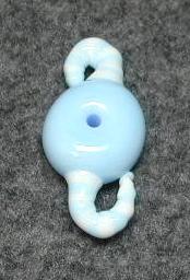 I was making a dotted bead one day when I wondered, "Gee, what would happen if I just kept adding and adding to these dots?" so I kept adding, first white then aqua then white then aqua -- and ended up with this oddball dingus whose tentacles I folded back on themselves to make "handles" (take note you micro-amphora makers, striped handles are possible). It's not attractive, but it's odd enough to be interesting.